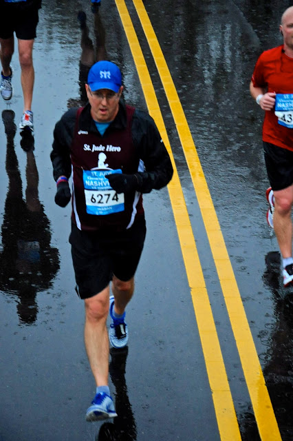 The torrential rains did little to dampen the spirits of the 30,000+ runners on Saturday, April 27 who took to the streets of Nashville to run in the St. Jude Country Music Marathon. Along with the others, I had a wonderful time on the soggy, splashy, squishy course.